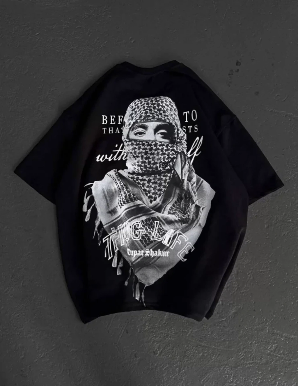 Unisex Baskılı Oversize T-Shirt - Siyah