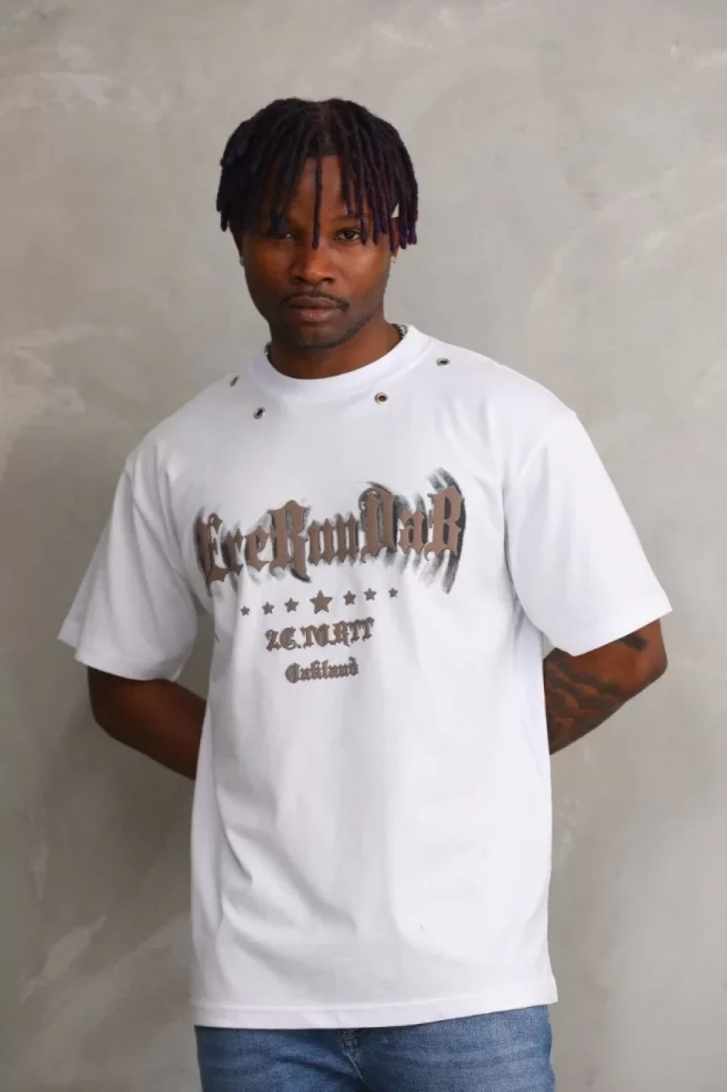 Unisex Kuşgözü Detaylı Baskılı Oversize T-Shirt - Beyaz