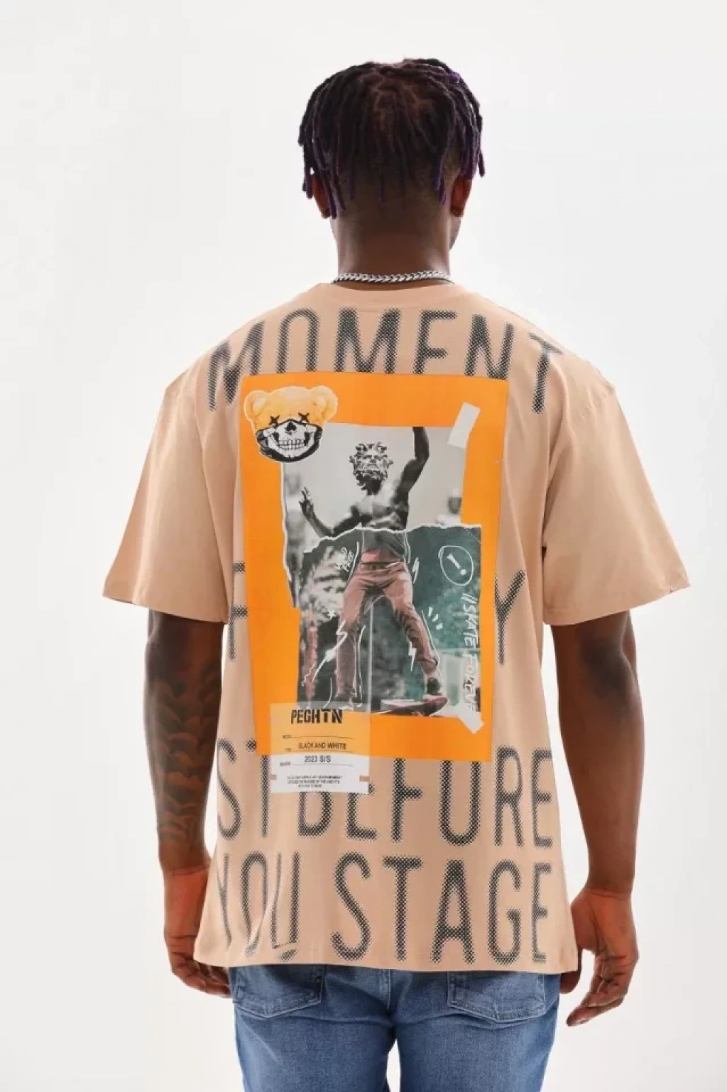 Unisex Baskılı Oversize T-Shirt - Bej