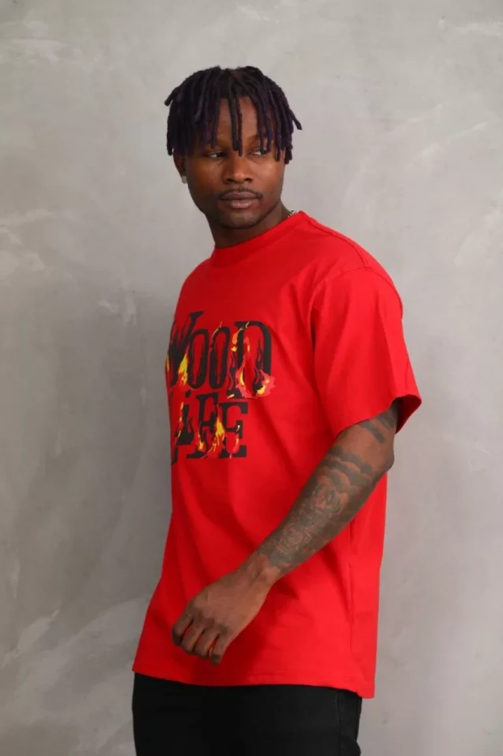 Unisex Baskılı Oversize T-Shirt - Kırmızı