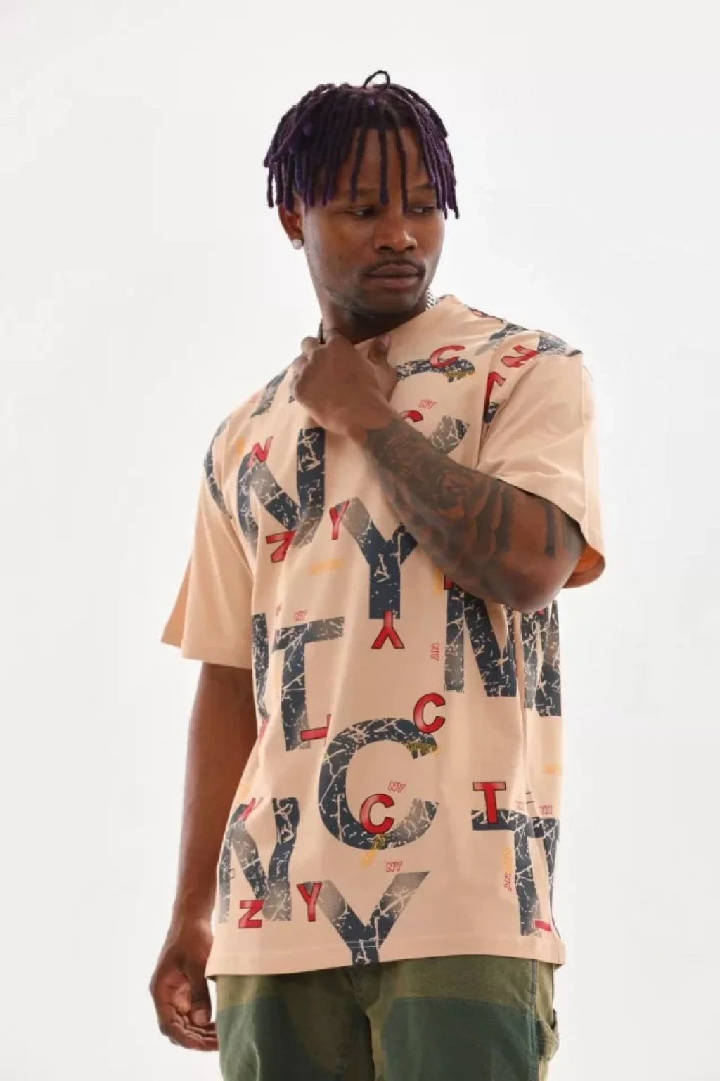 Unisex Baskılı Oversize T-Shirt - Bej