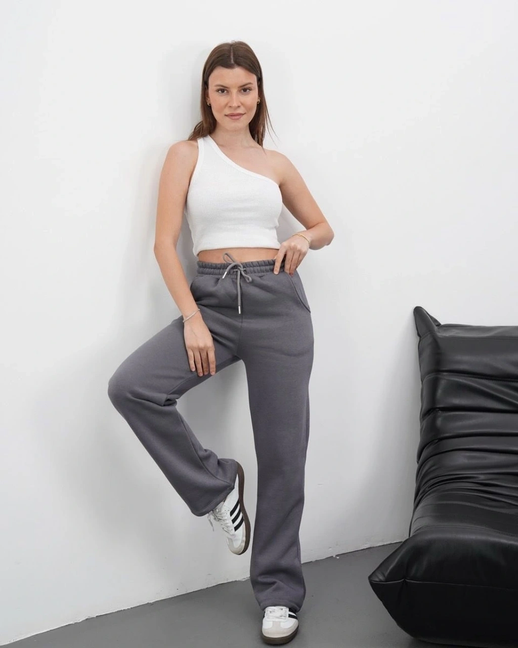 • 3 iplik şardonlu palazzo pantolon füme md64