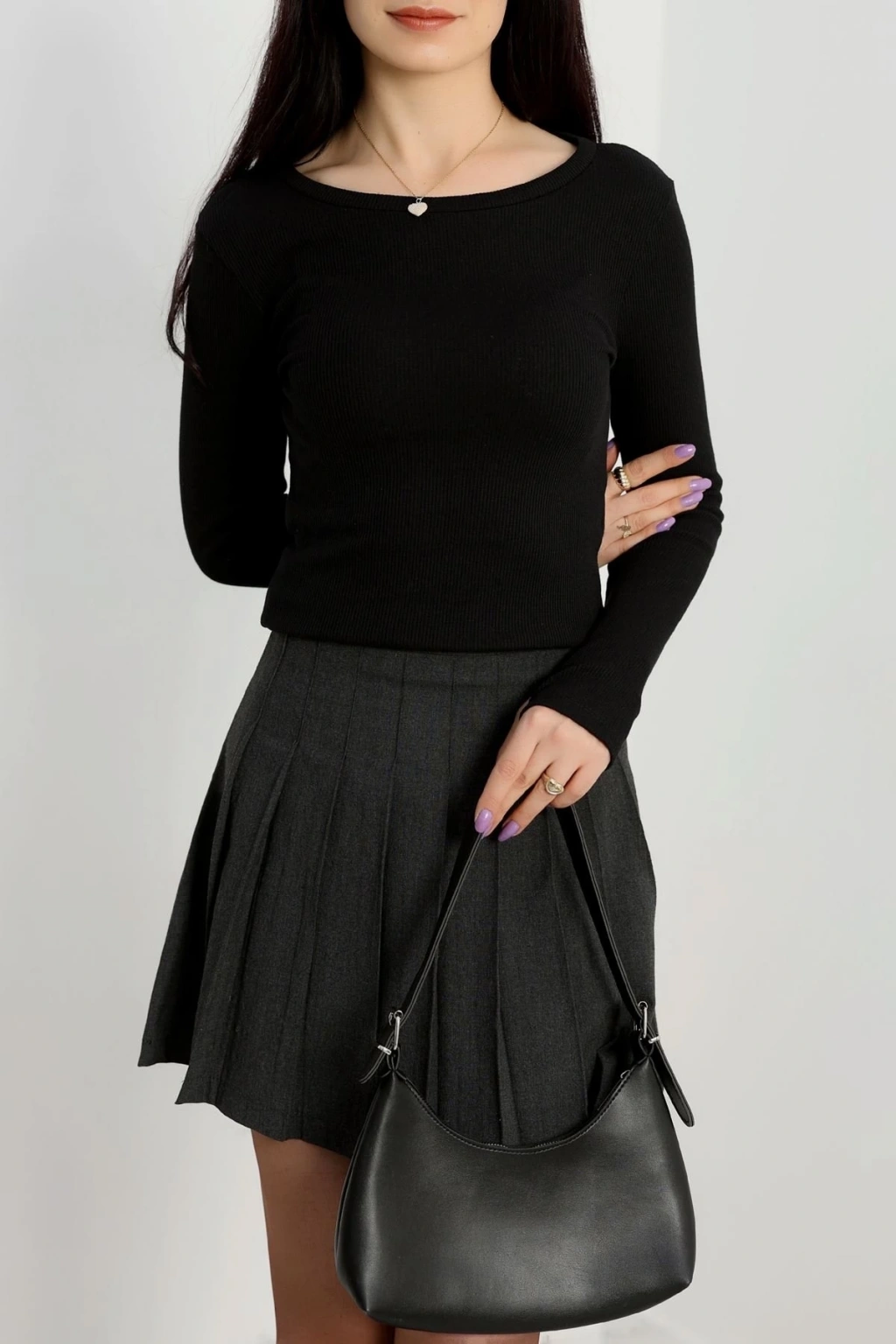 Bisiklet Yaka Parmak Geçmeli Kaşkorse bluz siyah a3829