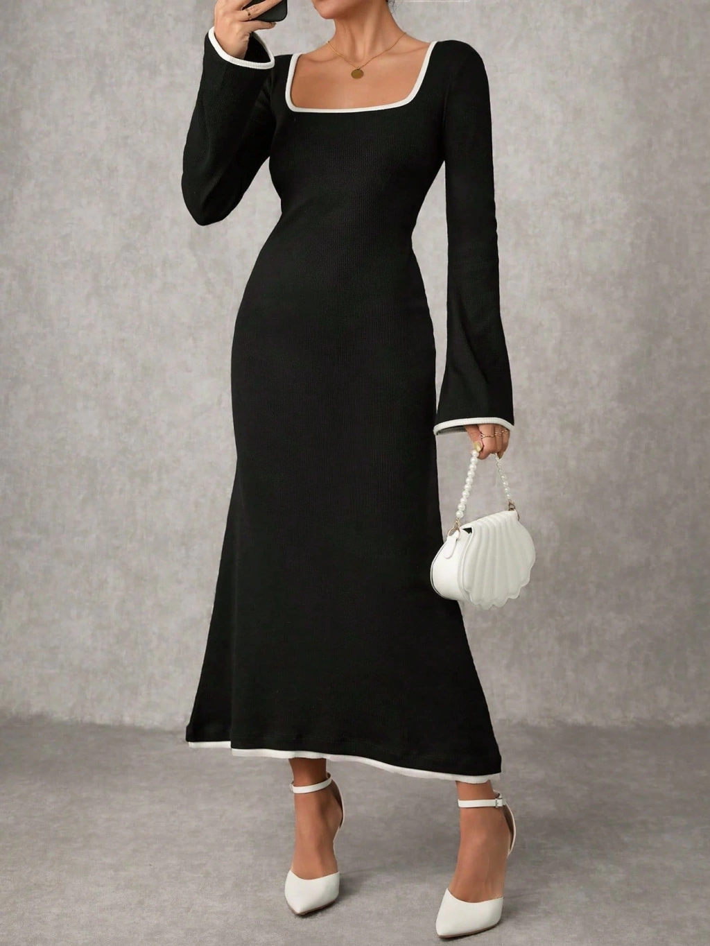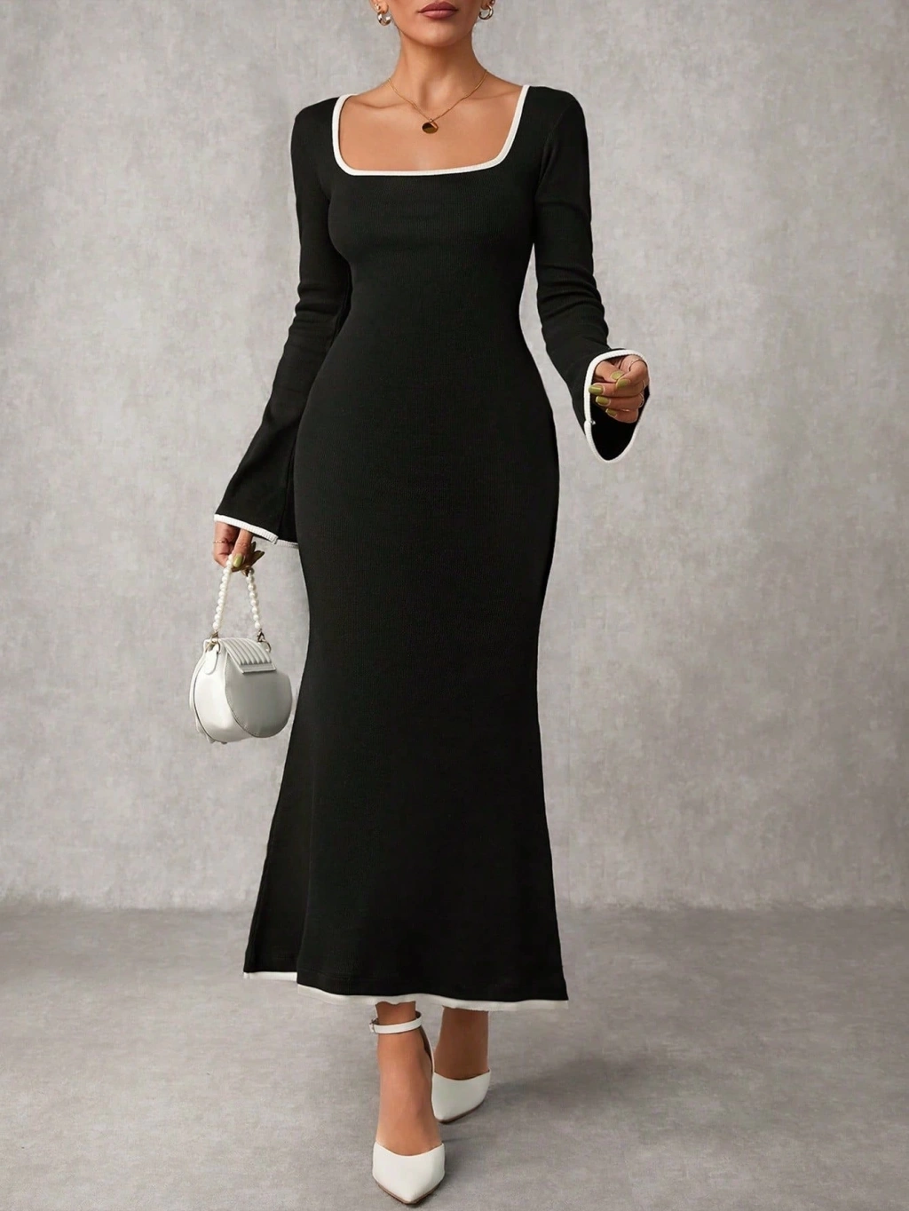 • Biyeli uzun elbise siyah