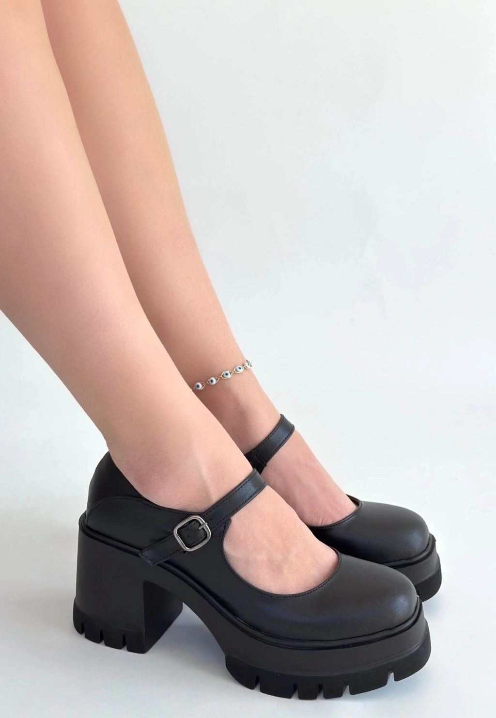 • Dlor Siyah Cilt Dolgu Topuk Ayakkabı