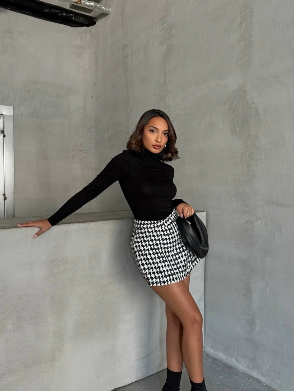 - Siyah beyaz kazayağı deseniyle modern bir görünüm sunar.