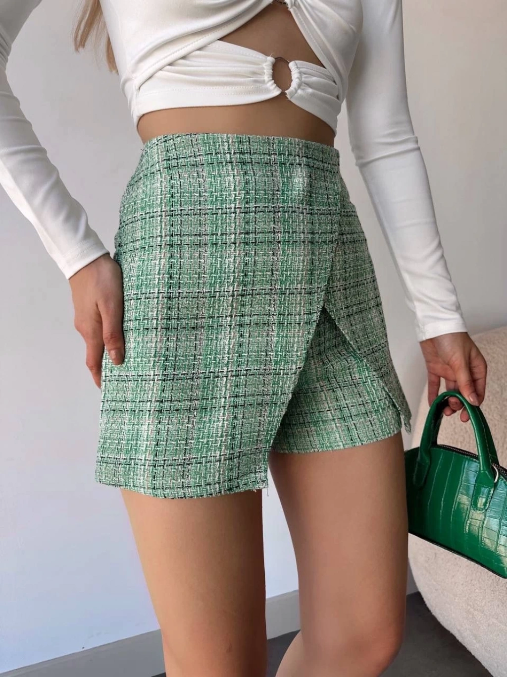 Modayı takip eden ve şıklıktan ödün vermeyen kadınların tercihi olan Kapaklı Tüvit Şort Etek Yeşil, her mevsimde kullanabileceğiniz çok yönlü bir parçadır.