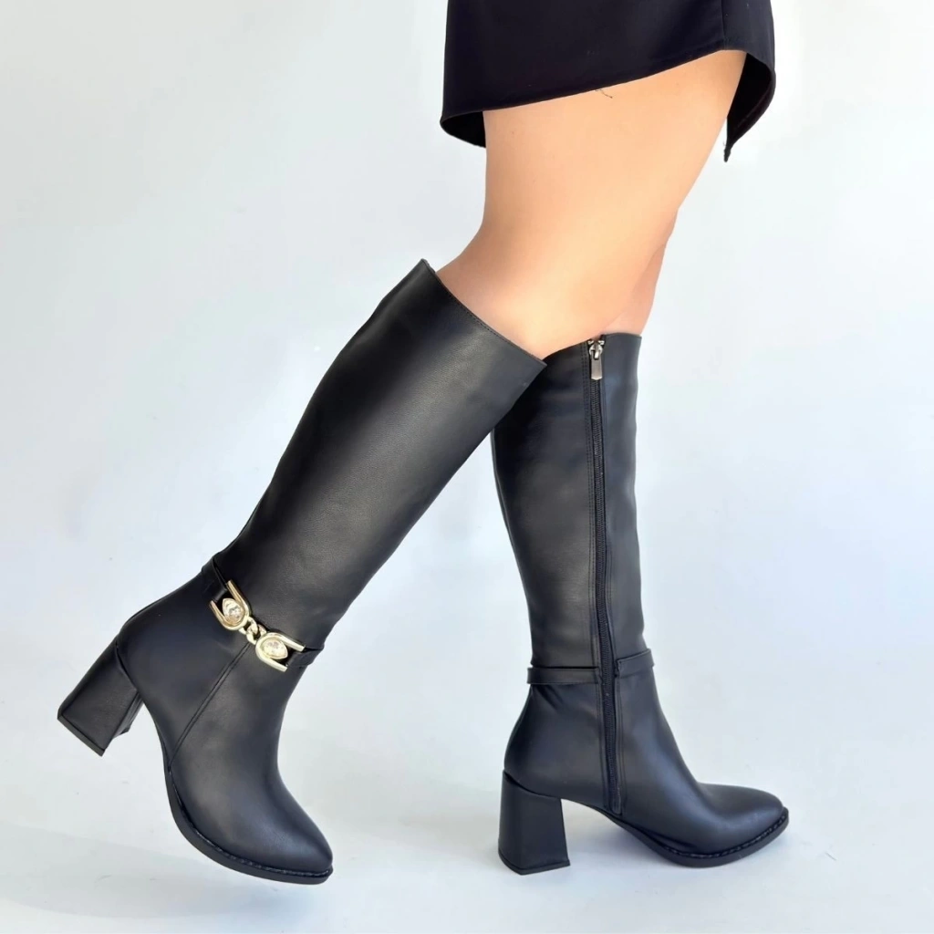 Detay : Topuklu Yandan Fermuarlı Diz Altı Çizme
