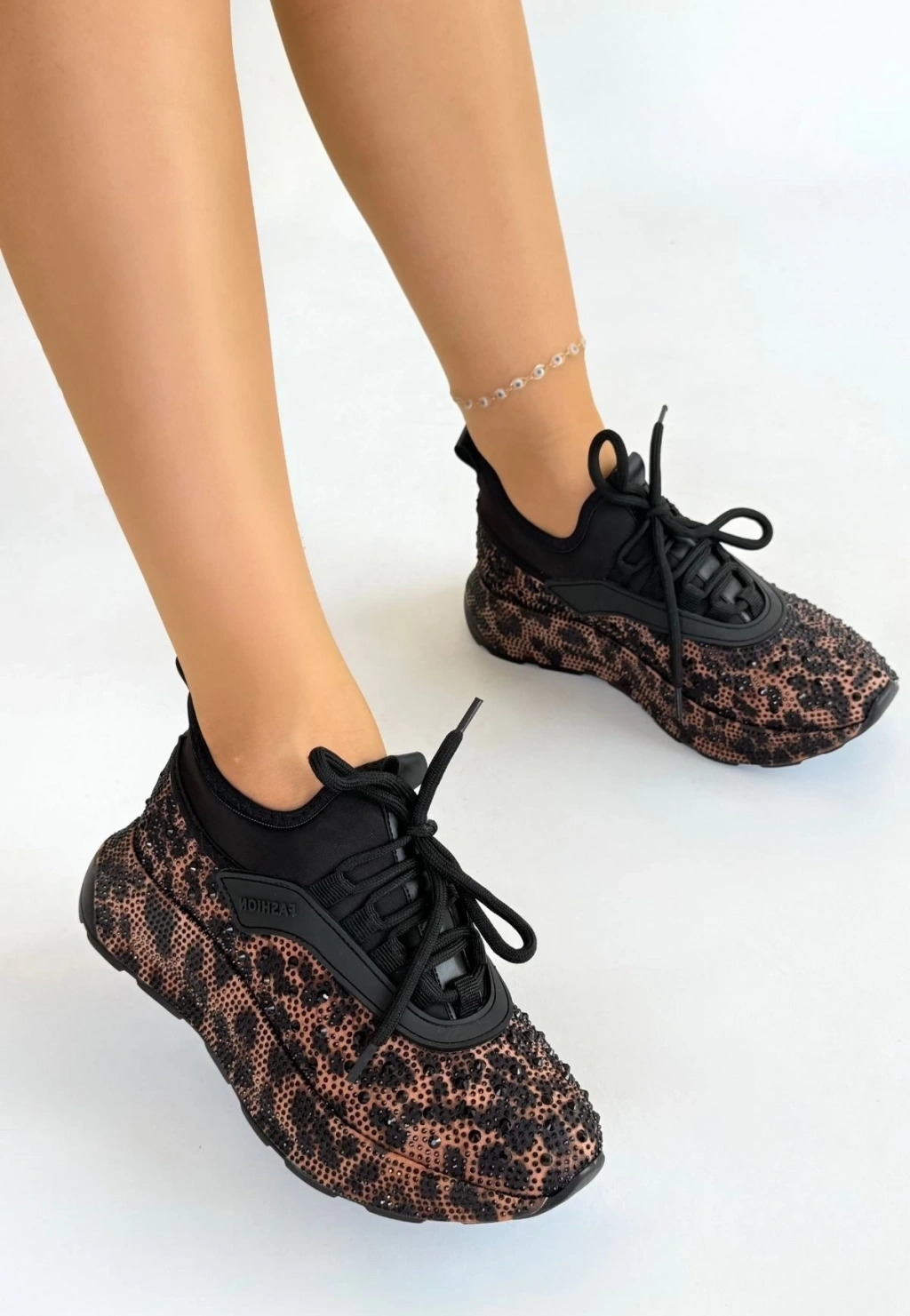 Rimay Kahverengi Cilt Boncuk İşlemeli Spor Ayakkabı