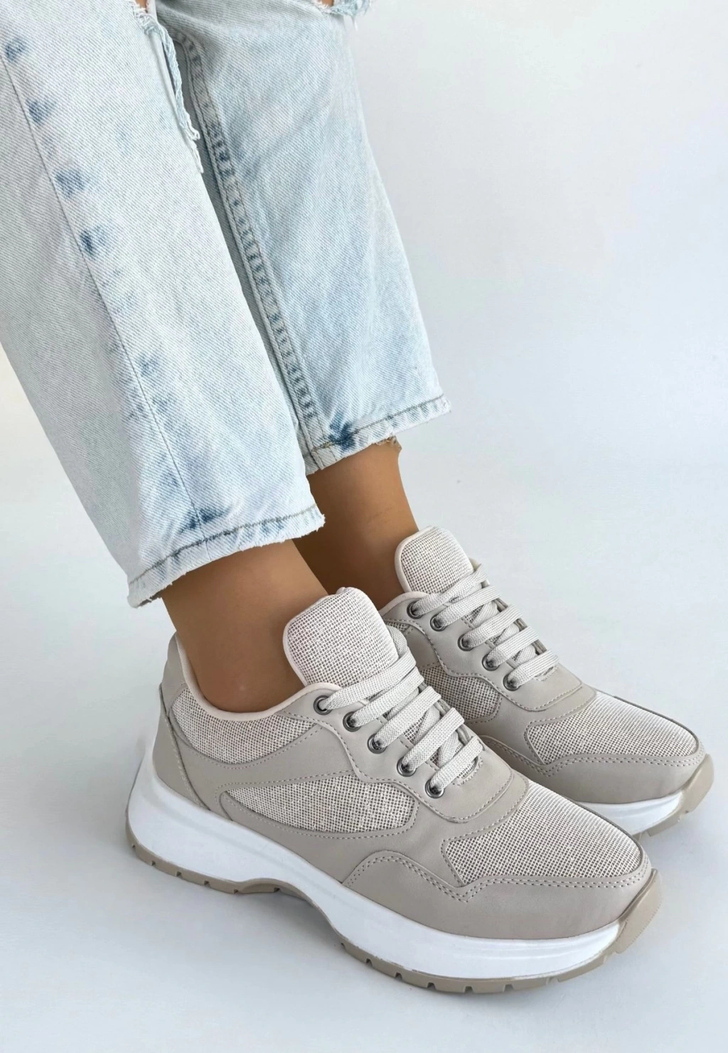 • Slar Bej Cilt Bağcıklı Spor Ayakkabı