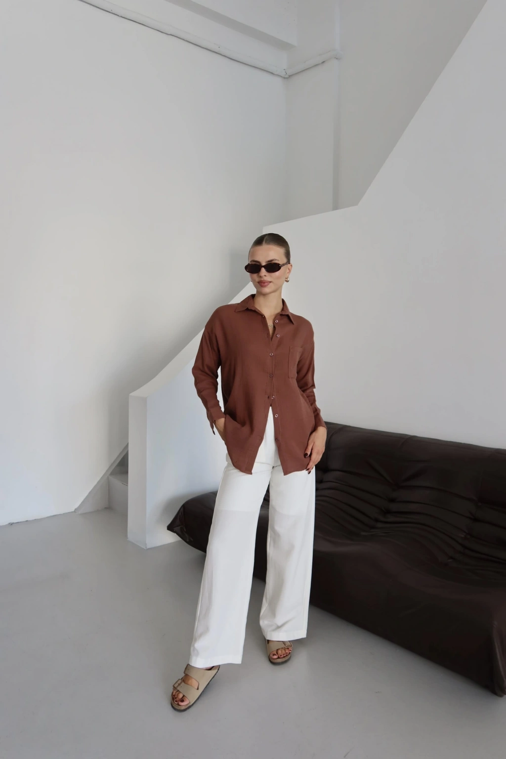 • Kadın Giyim kategorisindeki şıklık ve rahatlığı buluşturan Müslin Gömlek Kahve PT ile tarzınızı ortaya koyun.