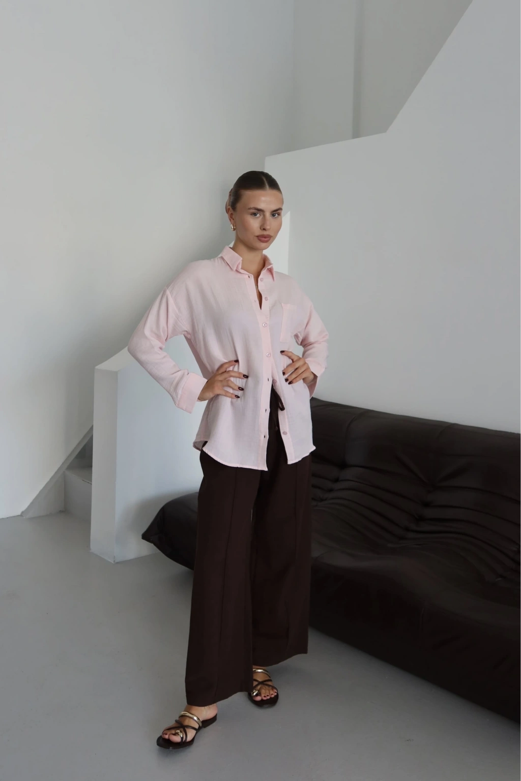 Tek cepli müslin gömlek pembe pt