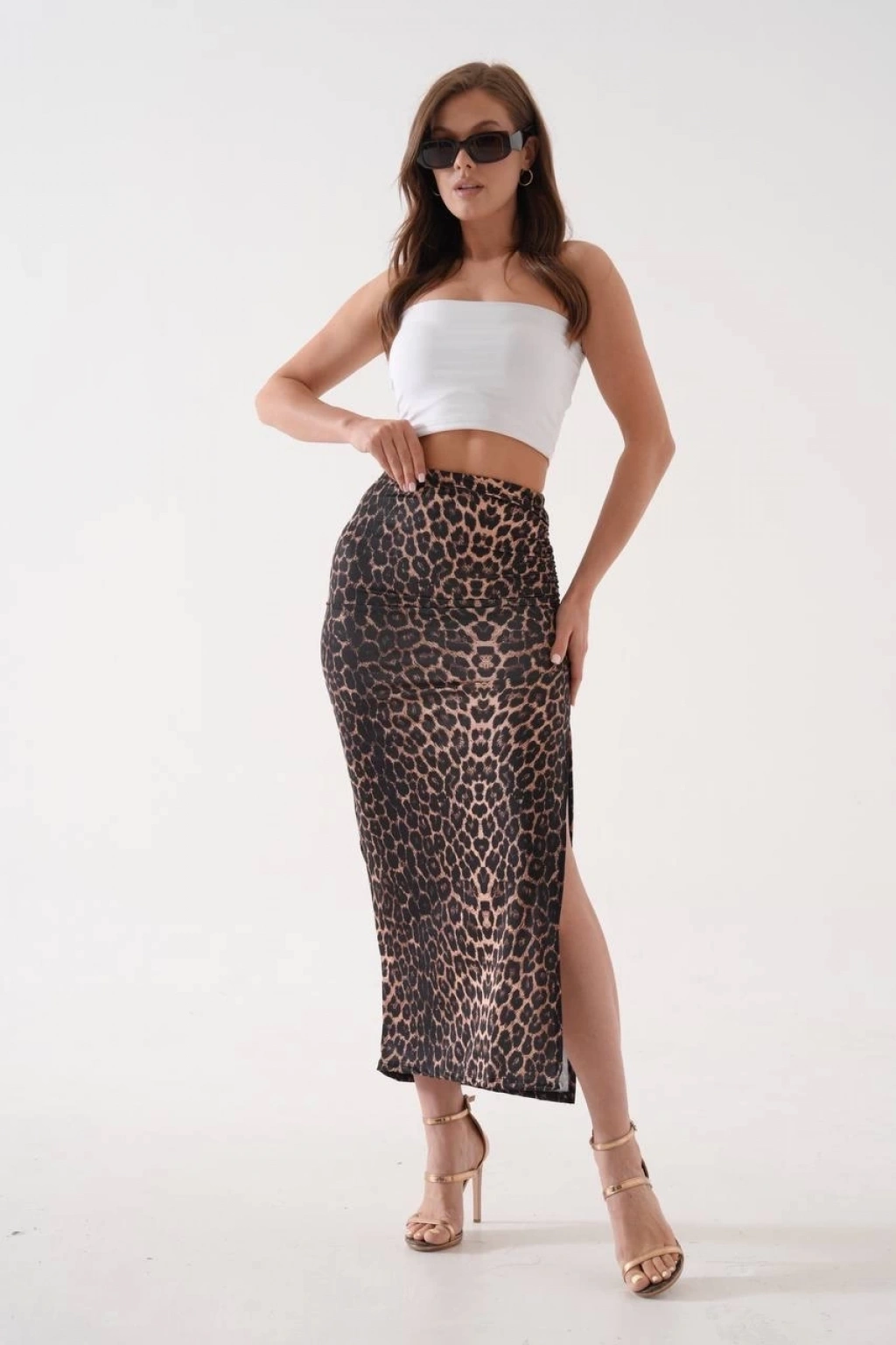 • Uzun yırtmaçlı ince kumaş etek leopar