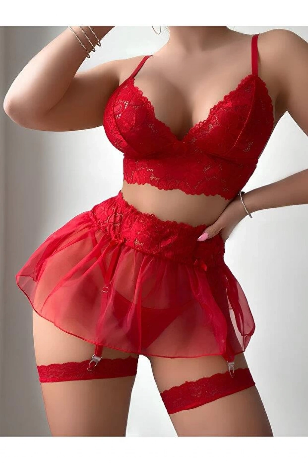 Kadın Kırmızı Kısa Tül Fantezi Kostüm 2199