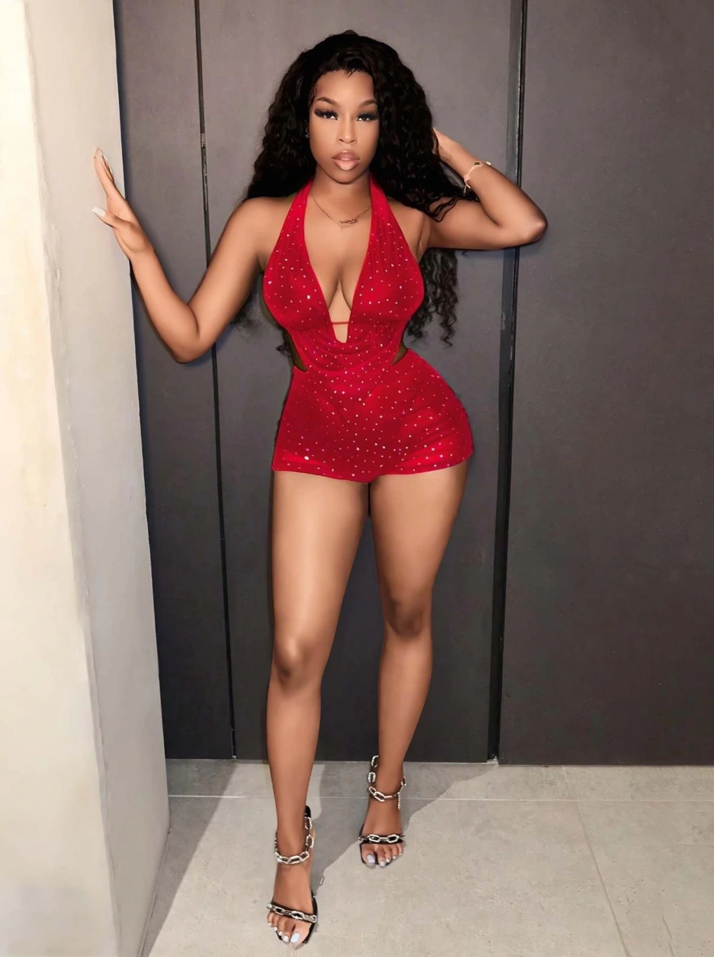 Kadın Kırmızı Parlak Fantezi Gece elbisesi 5039