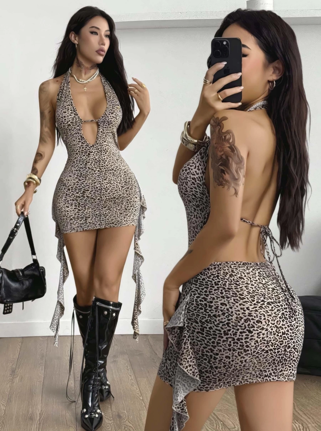 Kadın Leopar Desenli Fantezi Gece elbisesi 5114